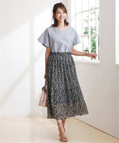裾に向かってプリーツが消えていく仕様になっていて、たっぷりとしたボリューム感が女性らしい印象の一枚。
