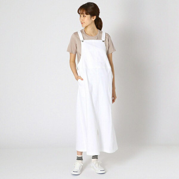 すっきりとしたIラインシルエットと、裾中央に入れたスリットで、カジュアルになりがちなサロペットスカートを大人っぽく仕上げました。