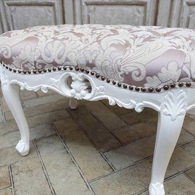 おしゃれ スツール アンティーク 大きい 大型 エレガント ロマンティック ロココ調家具 ロココ スツール 猫脚 かわいい ホテル レストラン 什器 プリンセス 姫系 家具 シンフォニー キドニー ビーン ビーンズ 豆 白家具 ホワイト ピンク 1160-r-18f68b