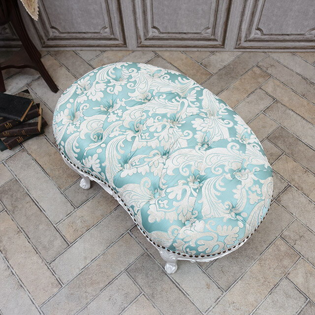 おしゃれ スツール アンティーク 大きい 大型 エレガント ロマンティック ロココ調家具 ロココ スツール 猫脚 かわいい ホテル レストラン 什器 プリンセス 姫系 家具 シンフォニー キドニー ビーン ビーンズ 豆 白家具 ホワイト 青 ブルー 1160-r-18f66b