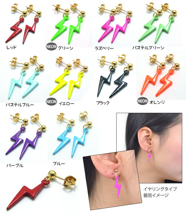 - 130729UP カラフル カラー豊富 ネオンカラー ビビッド パステル 稲妻 イナズマ イナヅマ カミナリマーク ビビット ヴィヴィッド ファッション 原宿 アクセサリー パーツ
